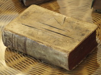 14548 Valerii M., Martialis Epigrammata, 1654 , 1st edition, vellum, kl.8vo, 456pp, Amstelodami, Apud Ioannem Iansonium, uitgegeven samen met Auli Persii Flacci Satyrae VI met commentaren van Joannis Bond (1659, 126pp), cover badly damaged E 75,-