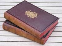 3910 VERNE J., De la terre a la lune. Trajet direct en 97 heures 20 minutes / Autour de la lune, 1872 , 1st edition, leather, 352pp, illustrated by Montaut/Bayard (41+44), Paris, J.Hetzel, 2 volumes in 1, 172 + 180pp, decorated brown morocco, gravures par Pannemaker / Hildibrandi, text on endpapers, corner cut from endpaper, stained pages E 150,-